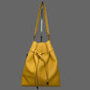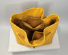 Originelle Bucket Bag in frischem Sonnengelb. Der Frühling darf kommen. 1 Träger, Bindeverschluss. 1 Innenfach, 1 Innentasche mit Reissverschluss.